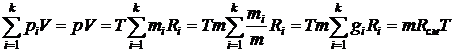 Рівняння стану для суміші ідеальних газів має вигляд: