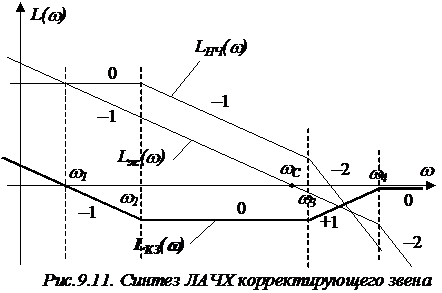 участок ЛАЧХ (рис.9.7). Низкочастотная ЛАЧХ синтезируемой САР не должна