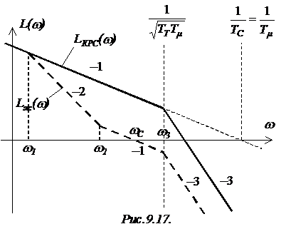ЛАЧХ разомкнутого КРС представлена на рис.9.17 (сплошная линия).
