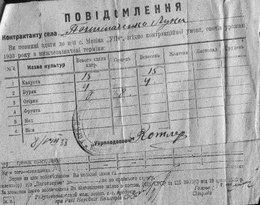 себе руки. За не здачу зерна позбавляли волі на 10 років. 7серпня 1932 р. ЦВК і
