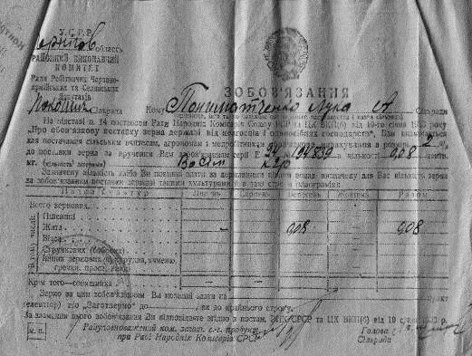 надзвичайної комісії вибрали з сіл усі запаси зерна. Деякі селяни накладали на