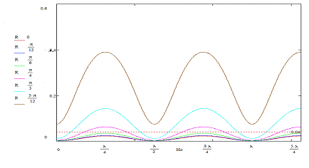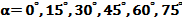 плоской волны α=0°,15°,30°,45°,60°,75°.