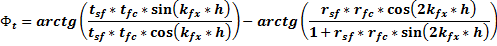 комплексных коэффициентов пропускания пленки t=M1* exp(iФ1) для углов падения