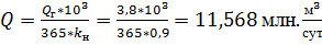 Суточная производительность газопровода: