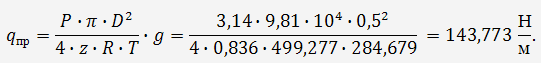 - внутренний диаметр газопровода, м;н
