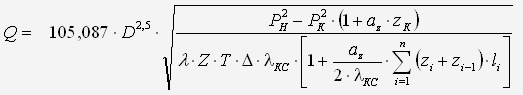 длине газопровода по формуле c