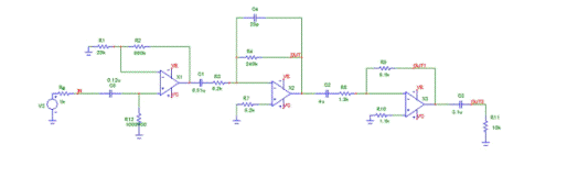 диапазоне пропускания частот используют операционный усилитель. В нем