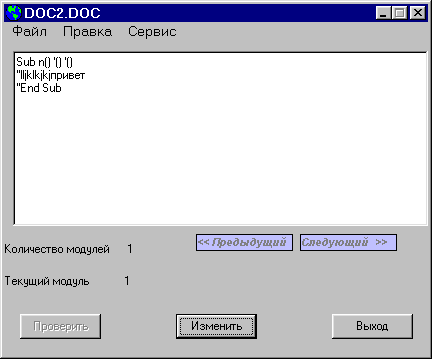 мы работаем, называется Doc2.doc, он содержит 1 программный модуль, который в