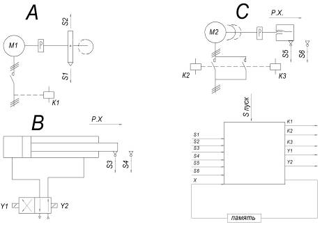 S5 и наезжает на датчик S6. Совершается рабочий ход системы "С".