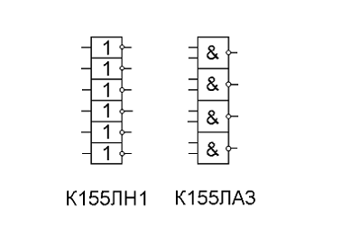 и К155ЛА3, например, имеют в своем составе шесть инверторов и четыре элемента