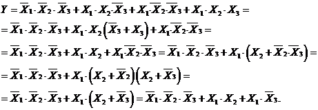 Упростим данную ФАЛ, используя вышеприведенные