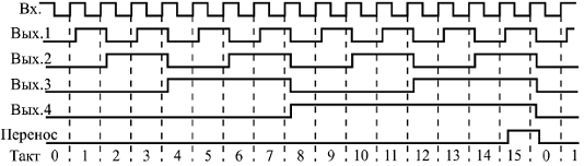 Проделайте опыты 4.2.4., 4.2.5. Нарисуйте временные диаграммы работы.