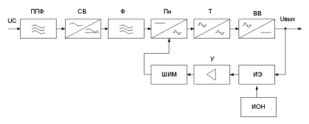 и ключевое устройство. Для реализации принципа импульсного регулирования,
