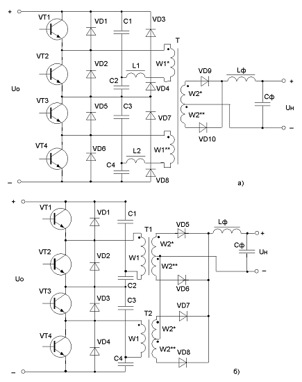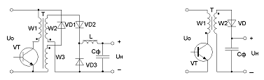 однотактных и двухтактных транзисторных преобразователях напряжения.