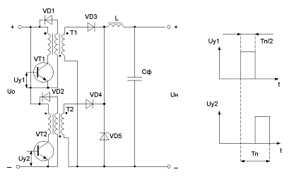 что значительно уменьшает потери мощности на них. Двухтактные преобразователи