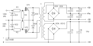 схема базового импульсного блока питания с выходным напряжением 60В, что