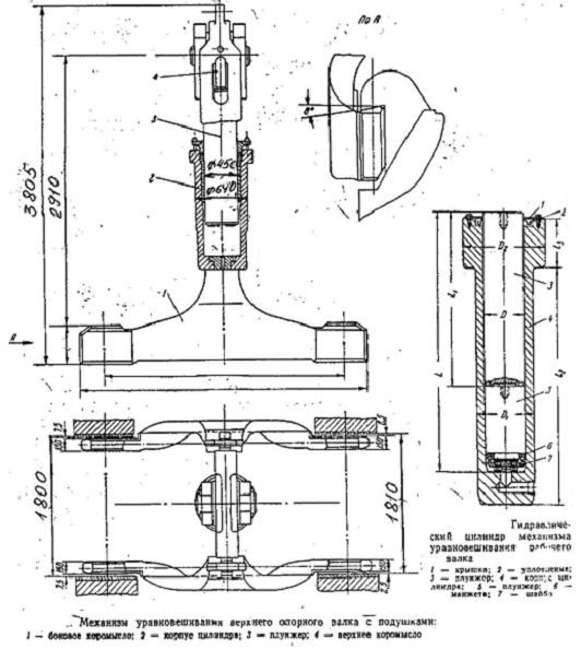 верхний опорный валок и гидроцилиндром комплект опорных валков вместе с