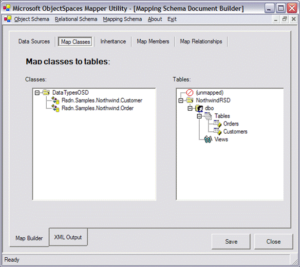 источник данных. В ObjectSpaces эту задачу выполняет класс MappingSchema