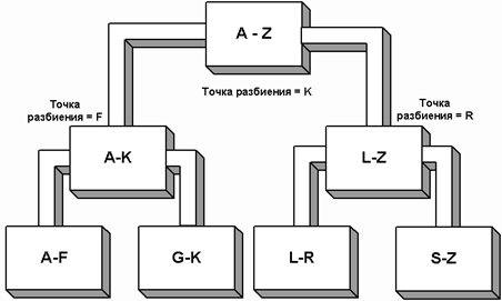 стопку алфавитных карточек по именам, можно разбить ее на две меньшие стопки