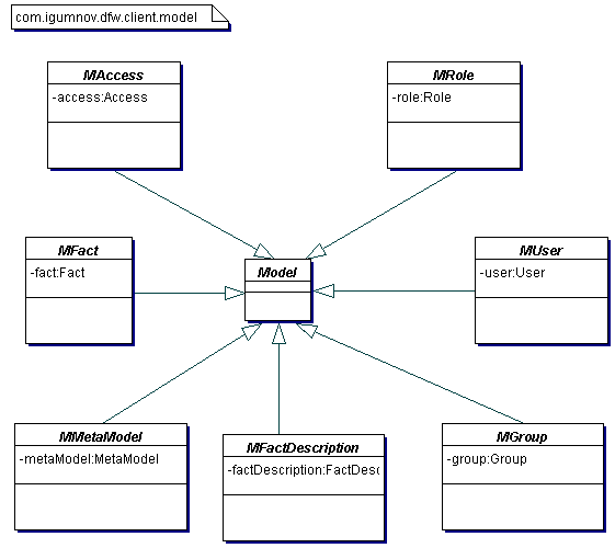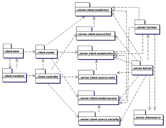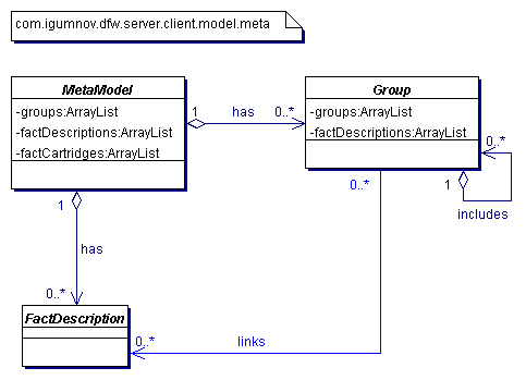 приложений состоит из 9 пакетов. Пакеты model.fact, model.meta, model.security