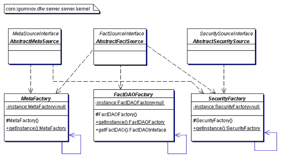 сервере приложений присутствует три завода. Завод MetaFactory работает с