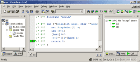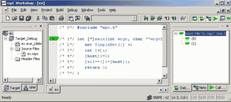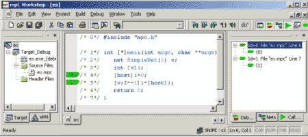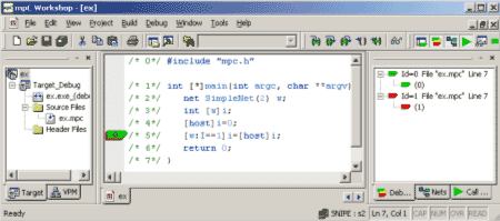 отладчике mpC принята описанная выше синхронная модель. То есть, отладчик