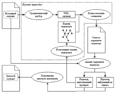 процесс работы переводчика с предлагаемой системой описывается схемой,