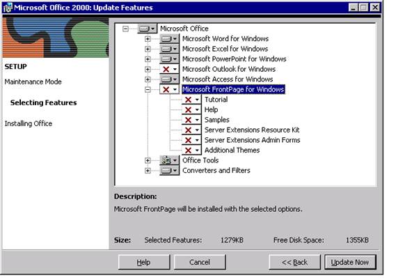 Затем мы выбрали FrontPage в списке и дали команду на установление.(См.Рис.2 и Рис.3)