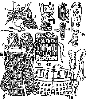 (сунэатэ - на рис.-16) или полосами металла, прикреплёнными к кожаному