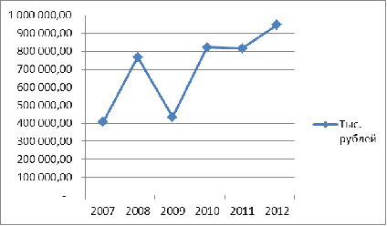 4- Выпуск продукции ООО «ВКМ-СТАЛЬ» в тыс. рублей за период с 2007 по 2012 г.