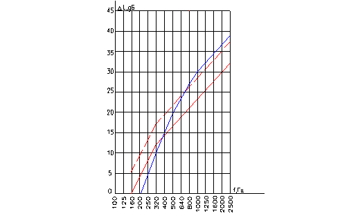 55/16=3.44 , что более 2дБ, смещаем нормативную кривую вверх на 6 дБ. Среднее