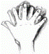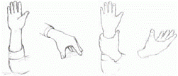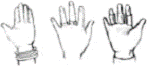 "лапками" вверх - правая рука тыльной стороной ладони лежит на столе,