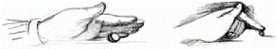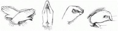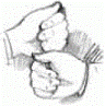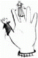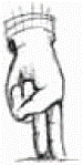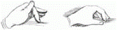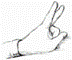 и указательный пальцы (остальные пальцы выпрямлены или немного согнуты).