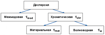 информации можно передать по волокну. Результирующая дисперсия t определяется