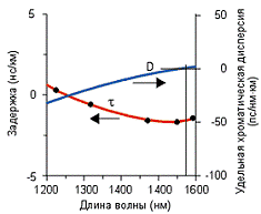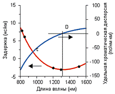 определения удельной хроматической дисперсии. Измеряются задержки по времени