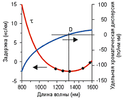 волноводной дисперсии всегда больше нуля, то коэффициент материальной дисперсии