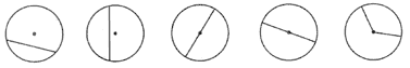 кола, в яких проведено діаметр. Відміть його червоним олівцем. У останньому колі
