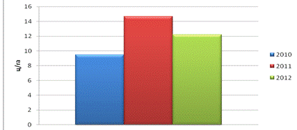 имела тенденцию роста, а в 2012 году рост опять же снизился.