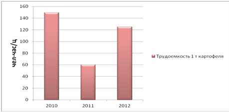 - трудоемкость 1 т картофеля был нестабильна на протяжении