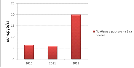 - Прибыль в расчете на 1 га посева неизменно возрастала, лишь в