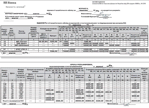 так і по рахунку 63 “Розрахунки з постачальниками і підрядниками” вказуються