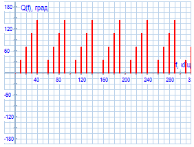 Изобразим графики амплитудного S(f) и фазового Q(f) спектров сигнала на частотном