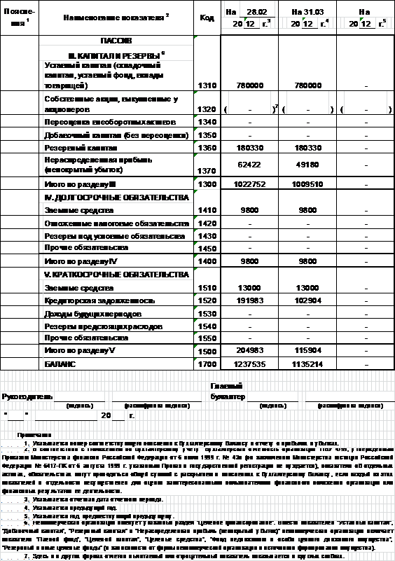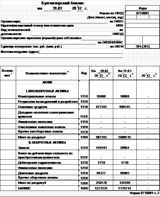Баланс по состоянию на 31 марта 2012 г. ЗАО