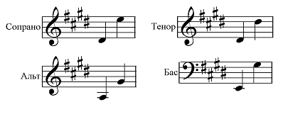 Диапазон хоровых голосов: