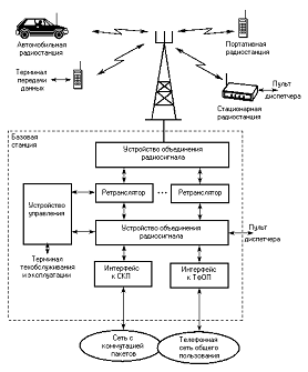 соответствующие стандарту TETRA, в которых реализован многостанционный доступ с