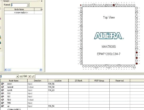 Для привязки портов схемы к контактам чипа Altera MAX7000S