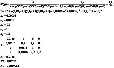 Гурвица выполняется. Можем выполнять проверку, находя определители матрицы,
