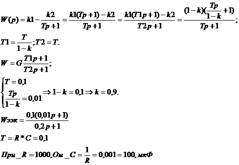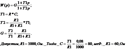корректирующего устройства видно, что Т1=0,1 и Т2=0,01.