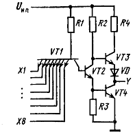 (VT2-VT5), многоэмиттерный транзистор VT1, а также резисторы R1-R5 и диод VD.