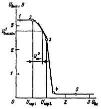 транзистора VT1) до значения порогового напряжения Uпор1=0,8 В (точка 2 на
